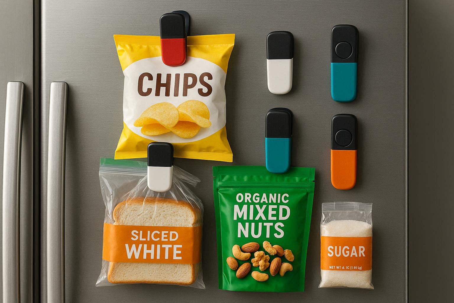 Perfect for small kitchens and organized cooks, these magnetic clips solve the problem of lost bag clips. They ensure your sealing tools are always within reach while keeping bags neatly sealed and stored, promoting a clean and efficient kitchen workflow.